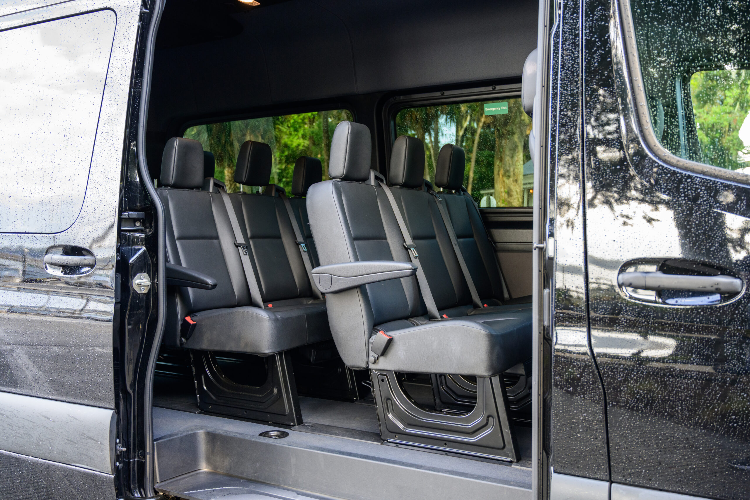 Mercedez Benz Sprinter is our luxury van of choice. This high end passenger vans can seat up to 11 passengers. Our Sprinter van is perfect for bachelor/bachelorette parties, golf outings and corporate meetings.